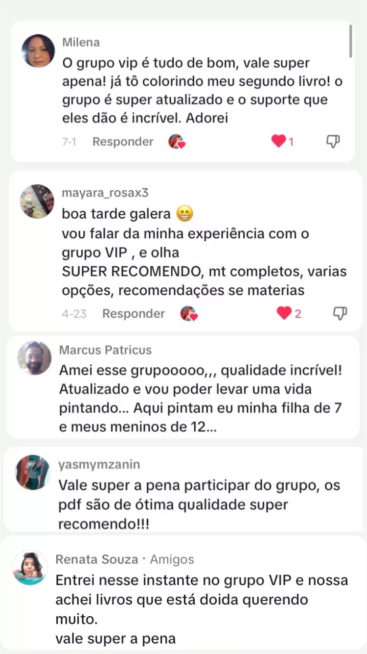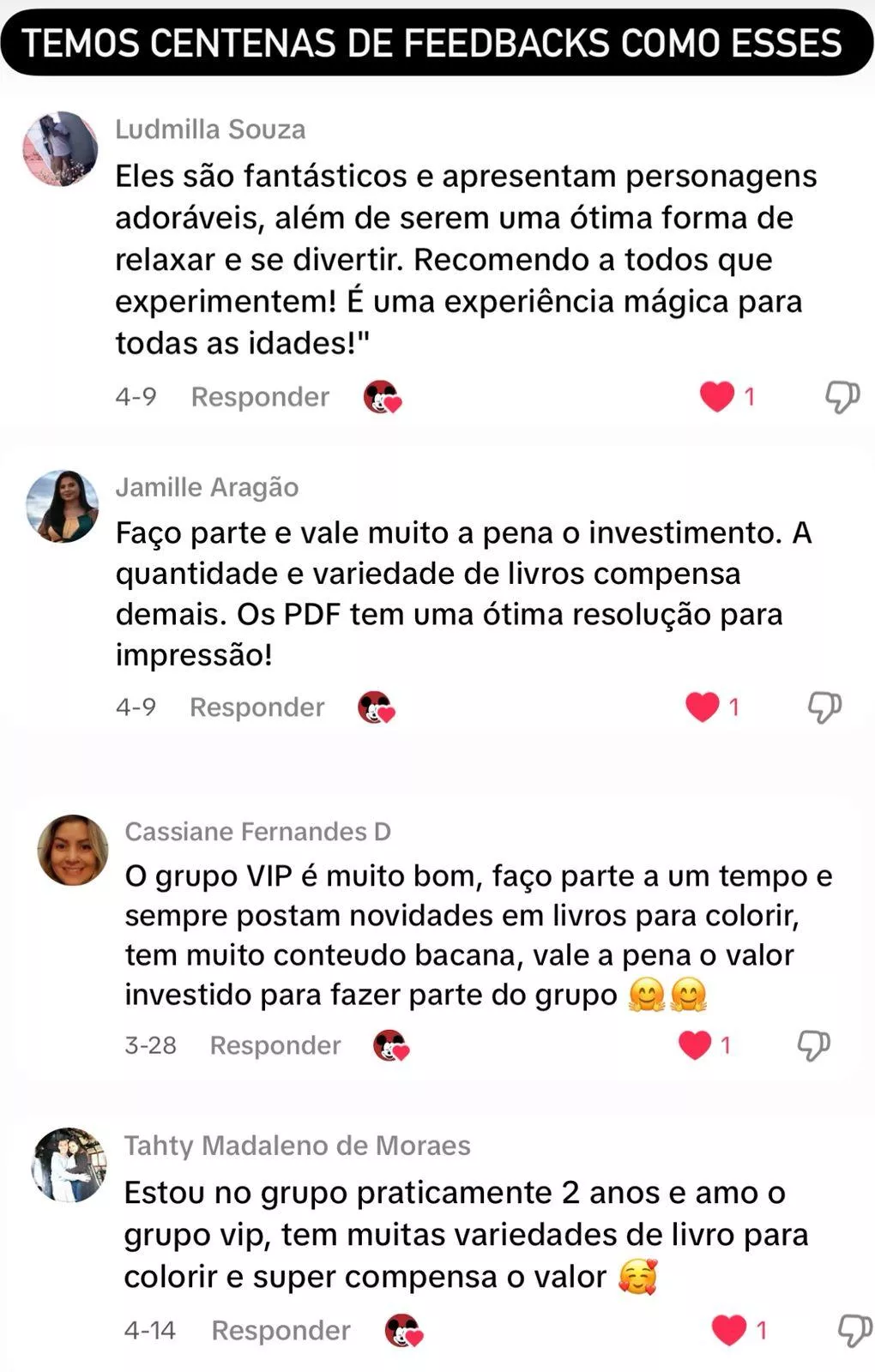 O desconto de cem reais acaba em breve, após só será possível entrar no grupo vip pagando o valor cheio, que ainda assim você estará fazendo um ótimo negócios, tendo em vista que, se você comprar na Amazon os livros físicos de colorir que tem no nosso grupo vip, eles custam de setenta a oitocentos reais. E no grupo vip temos mais de 550 livros em pdfs, ou seja, um valor inestimável!