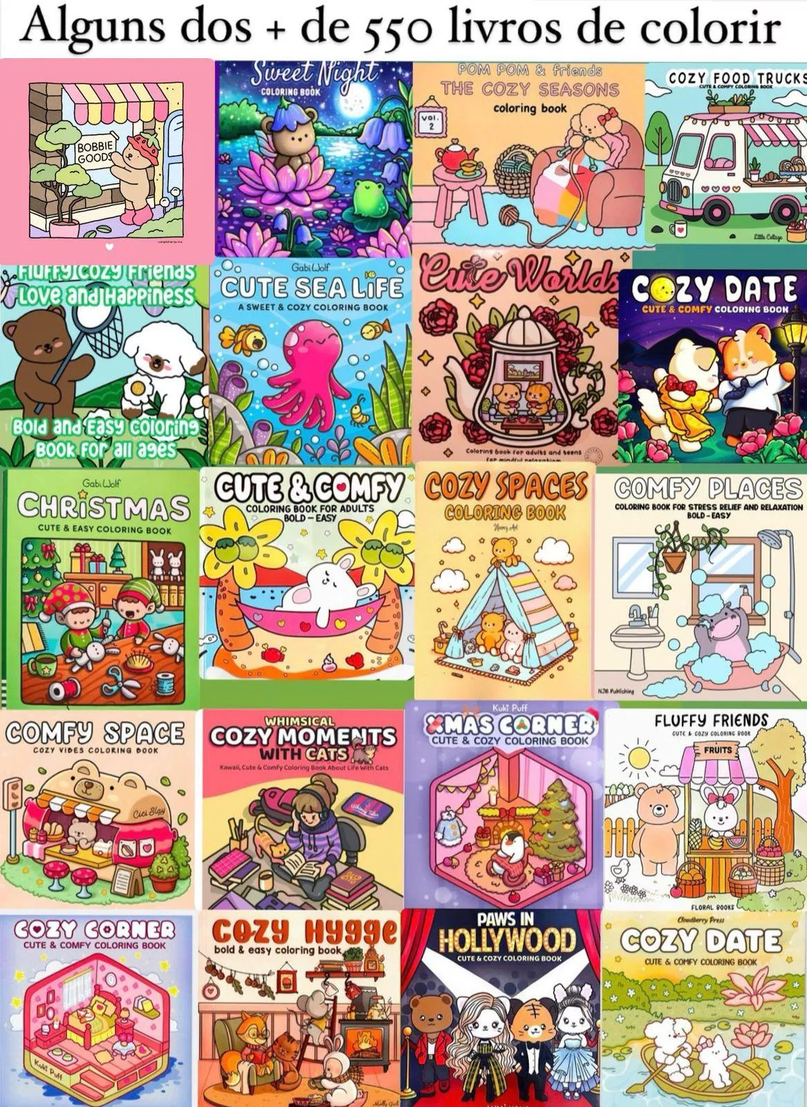 Tem os livros + virais do momento, Portraits, de Super Heróis, Princesas, Bobbie Goods, Lulu Mayo, Fuzzy Hygge, Cozy & Cute, mandalas, natureza, bichinhos, flores, arquitetura, pixel, marca páginas...